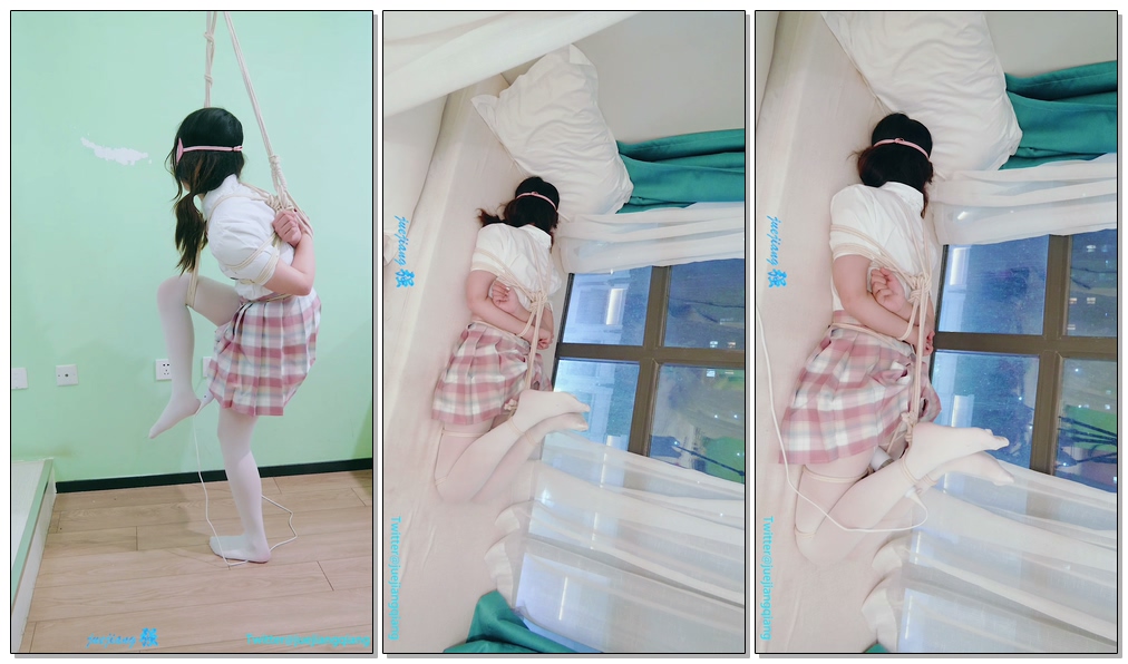 伊伊单脚吊缚 震震刺激 之后自己挣脱出来 又被我绑成驷马放在飘窗上 外面可是能看到里面的哦 不想被看到的话只能抓紧再次挣脱了