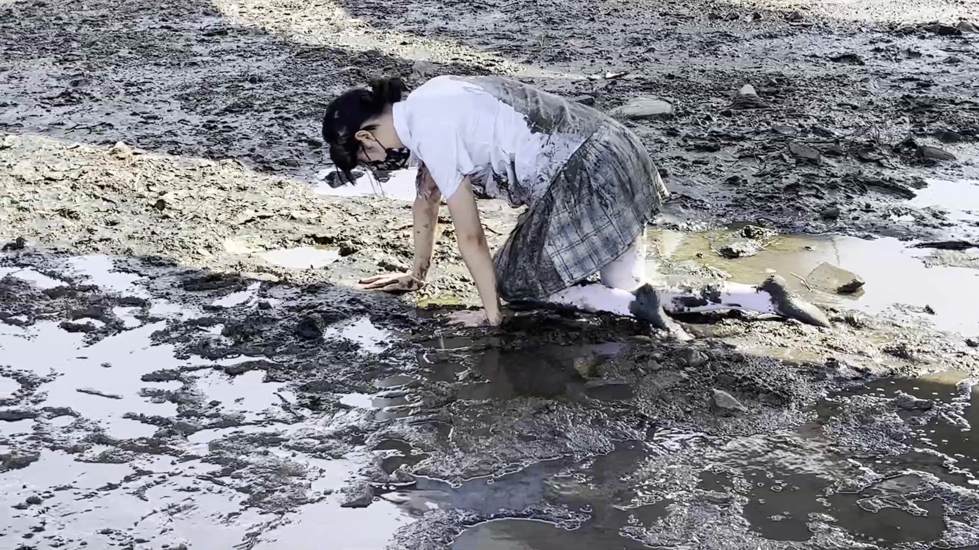 【小瓶子】粉色jk白丝工地旁玩泥玩水