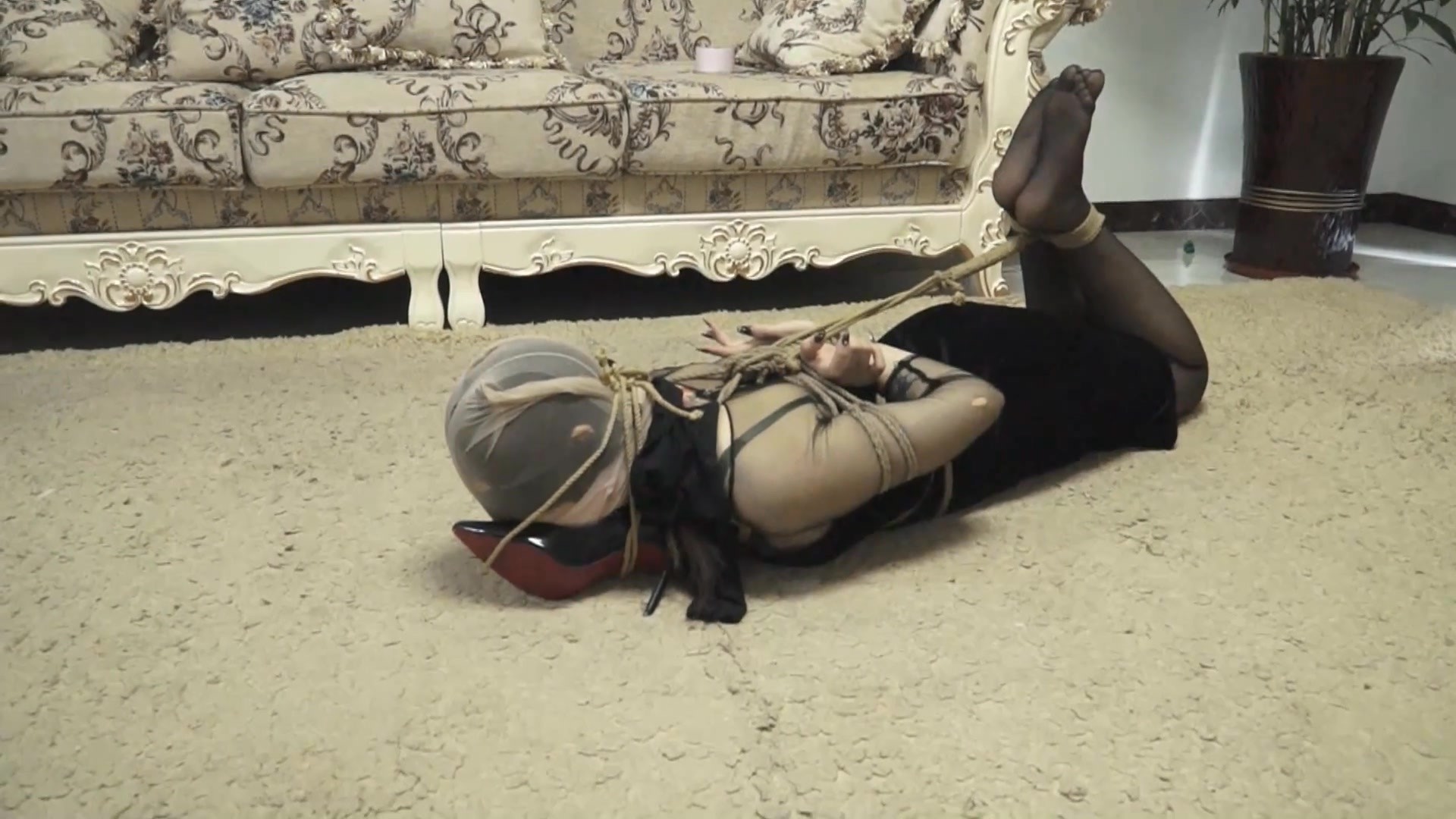 无剧情纯捆绑挣扎。这位高个子的模特身穿一身黑裙与黑色丝袜,[X_X]地站在柱子前被绑好,从头到脚连脚趾与手指都被绳子绑了起来。嘴巴被胶带封嘴,布条蒙眼,再用丝袜套住头。呼吸困难的模特就这样被绑在了柱子上。