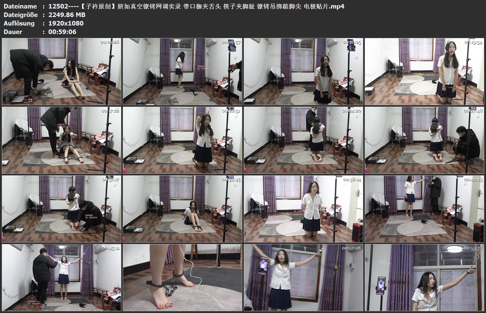 【子衿原创】妍如真空镣铐网调实录 带口枷夹舌头 筷子夹脚趾 镣铐吊绑踮脚尖 电极贴片