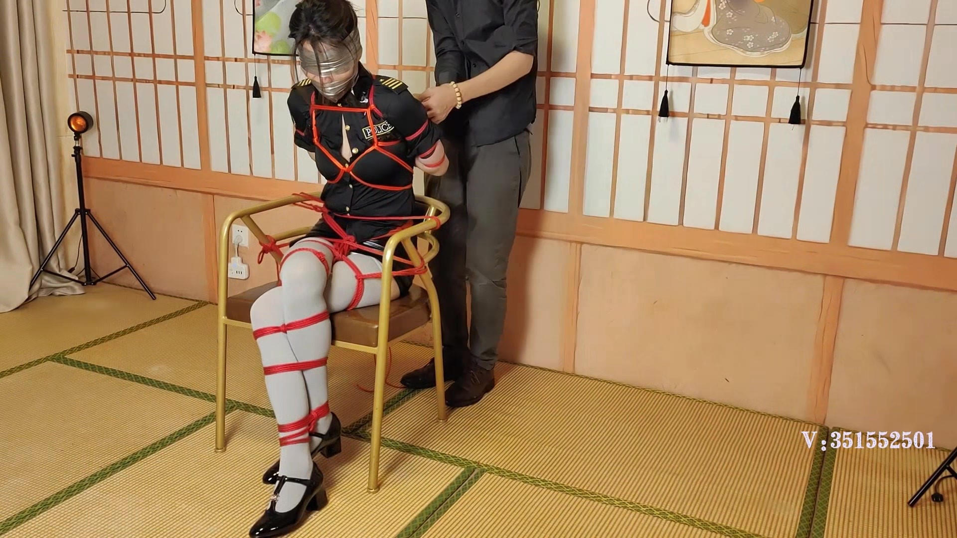 身份神秘的女人优优,被五花大绑紧紧的绑缚着,双腿也紧紧绑起来,在地上拼命挣扎寻找逃脱的可能,但无济于事,根本无法逃脱。徒劳挣扎。随后翘着二郎腿又被紧紧绑缚固定在椅子上,蒙眼嘟嘴神秘都看不见,被袭胸玩脚