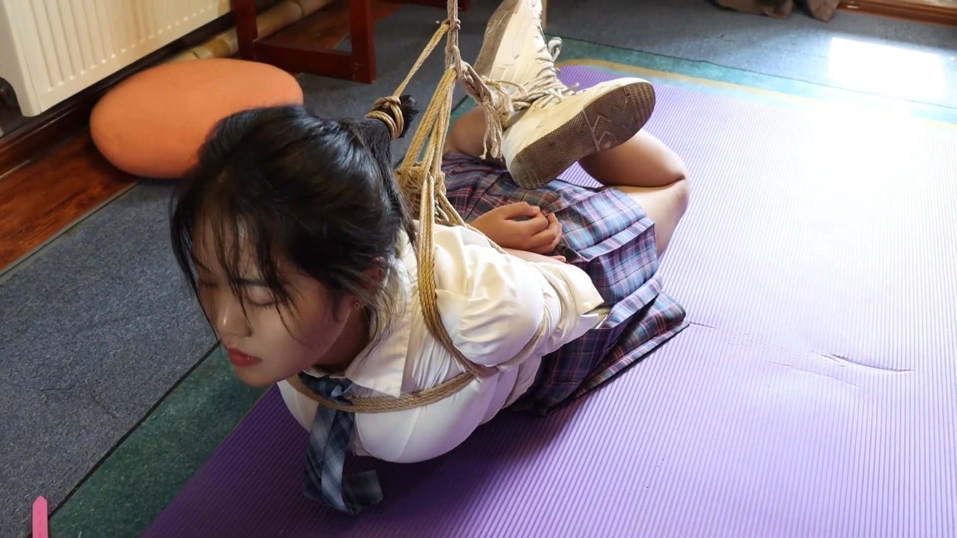 吴倩jk装体验极限驷马,大学生女孩很能忍,被绑的满头大汗都不吭