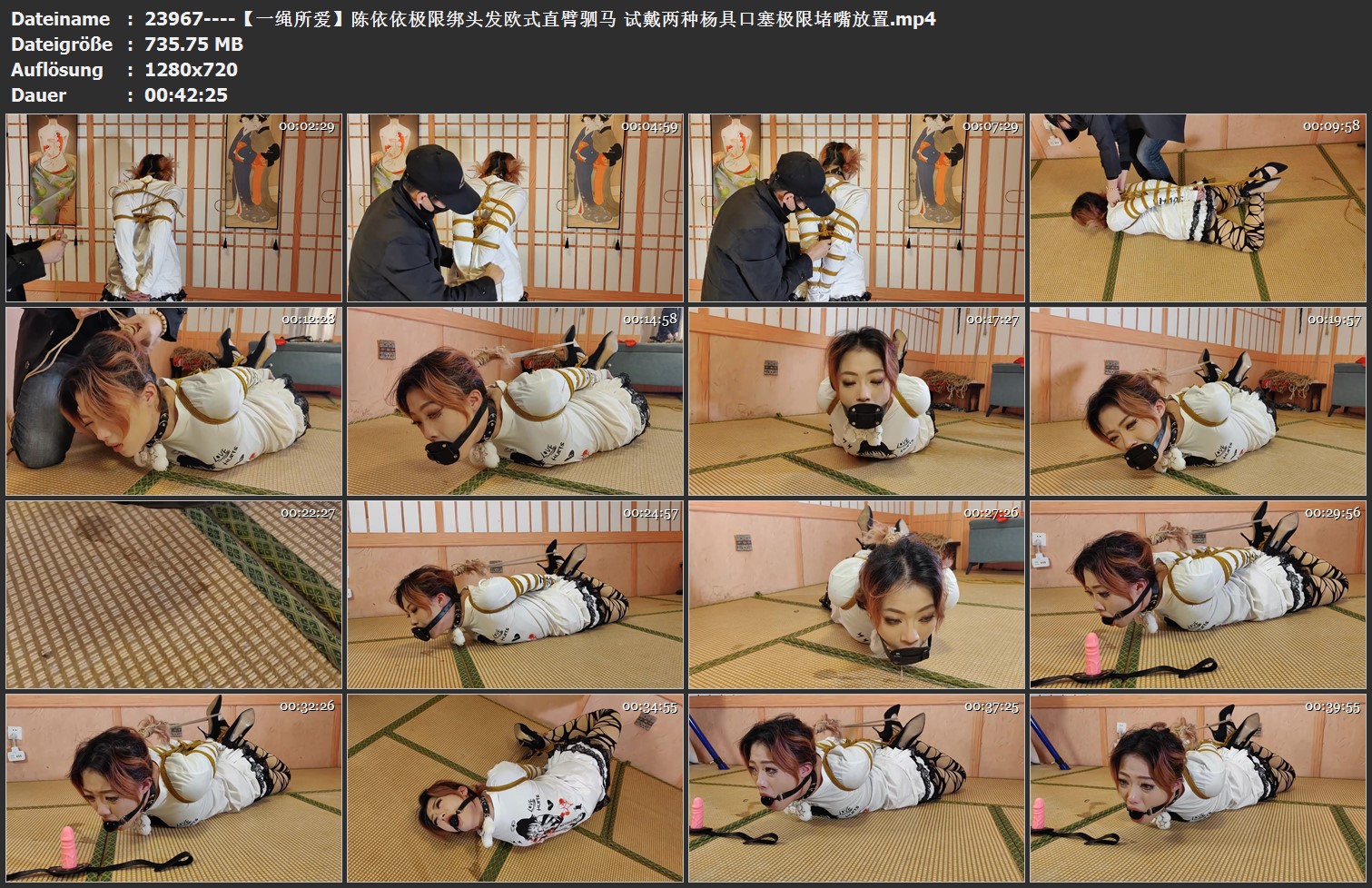 【一绳所爱】陈依依极限绑头发欧式直臂驷马 试戴两种杨具口塞极限堵嘴放置