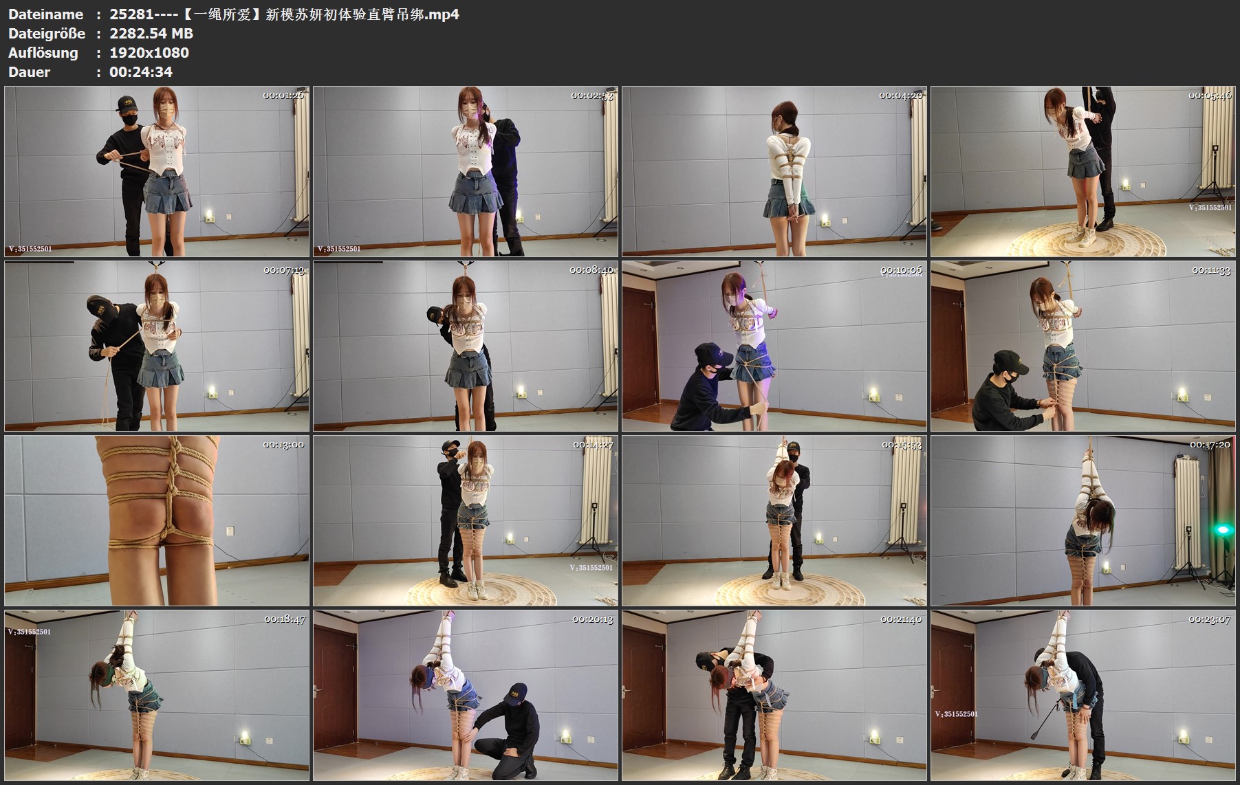 新模苏妍素衣体验捆绑,一上来就捆了很紧的欧式直臂,还把手臂吊了起来,小嘴巴用口球堵上,用鞭子招呼