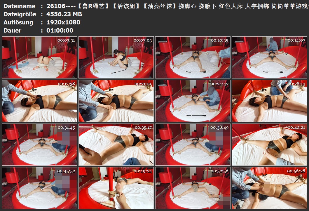【鲁R绳艺】【活该姐】【油亮丝袜】挠脚心 挠腋下 红色大床 大字捆绑 简简单单游戏一下