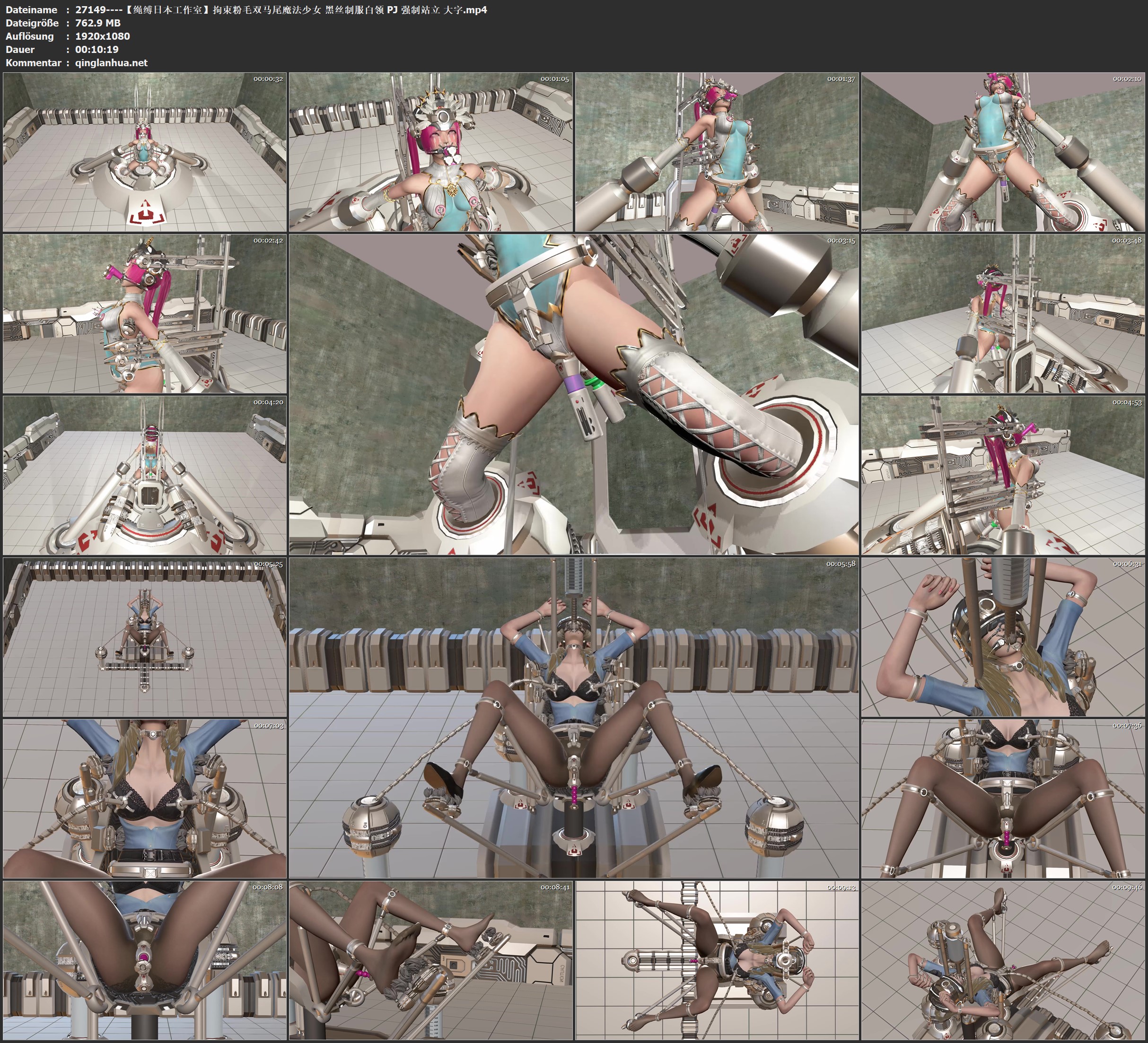 【缚心室】肉丝双马尾女学生体验新玩具炮机椅,后手直臂固定连头