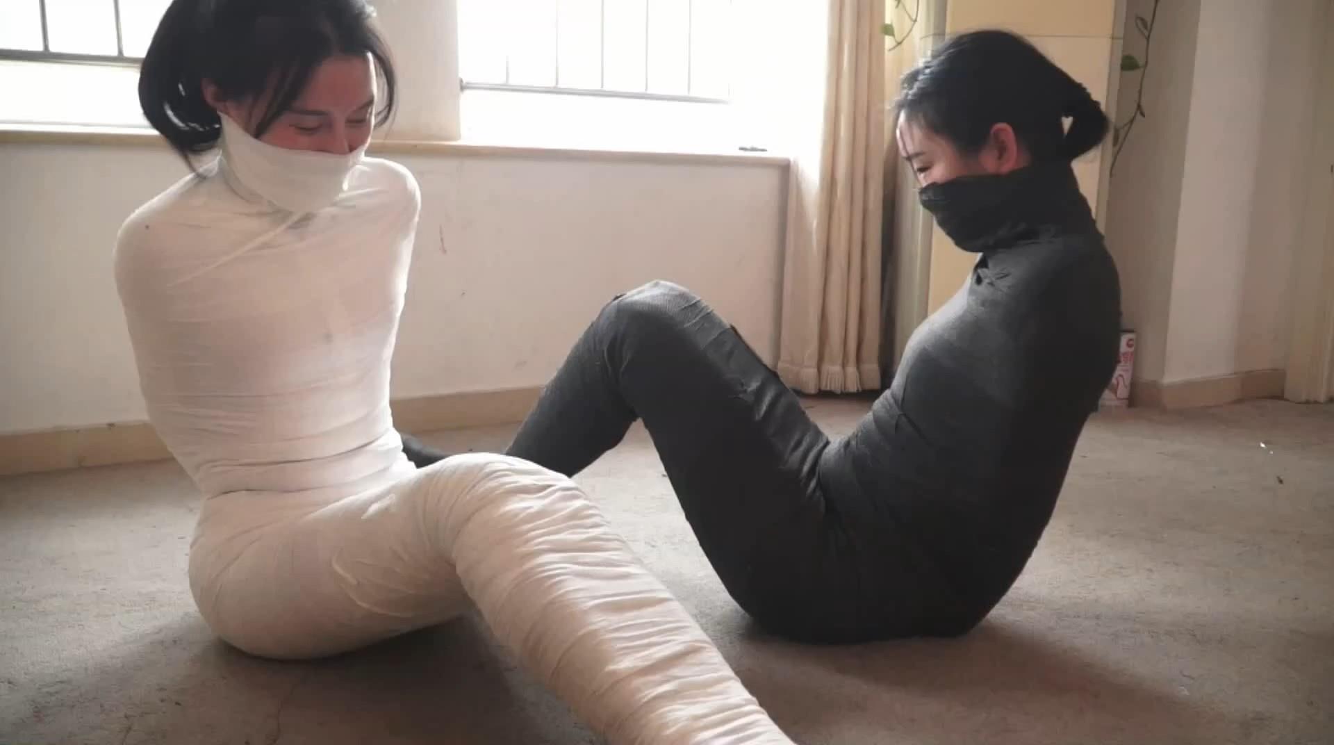 "喜欢全包系的千万不要错过,非常精彩一个带面具的小偷,他偷偷摸摸的潜入客厅,在房间桌子上的水里加了一点药水。然后他藏在另外一个房间里。 2个美女有说有笑的聊天回家,累坏了的她们喝掉了桌上的水,可怜的她们没一会就晕倒了。 2个美女迷迷糊糊的醒来,发现自己居然被绷带包裹了,美女互相害怕的大叫,挣扎。 其中一个反应快的美女发现自己一人根本挣脱不开,于是她赶紧艰难的蠕动到另外一个美女身边想帮她解缚。 她想用握拳的手尝试,但是根本没有,她不死心的开始用丝袜脚趾想弄开绷带,可惜绷带太紧,她又失败了。 她们如同肉段子一般在地上苦苦扭动,但根本无法挣脱。 但倒霉的事还没结束,没一会男人出现了,他拿出一大堆绷带,2个美女吓的呜呜直叫,看来男人还打算干什么。 没一会,2位可怜的美女就被绷带包裹成了如同埃及的木乃伊一样,变成了2个只能蠕动的人棍。 她们艰难的想用唯一能动的脚趾解缚,但很明显,面对如此极端的拘束,这根本一点效果都没有。 随后她们又想互相磨蹭身体来把绷带弄松,可惜,绷带比她们想象的牢固的多。 她们痛苦的呻吟扎,玩命的蠕动着想挣脱这几乎绝望的拘束,她们最后能逃出生天吗? 稀有的国内双人木乃伊!挣扎超卖力,模特脸都通红了~"