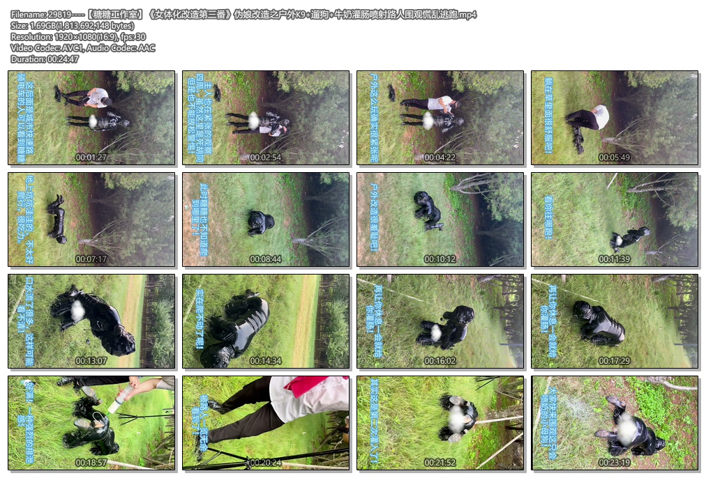 经过了两次女体化改造之后的糖糖已经被要求在公司女装工作了。今天经理说要带糖糖拍一些户外照片。说罢让糖糖陪经理一起出去。到达目的地之后糖糖又穿上了乳胶紧身衣,并戴上了[X_X]头套。没想到经理这次打算带糖糖户外调教,糖糖换上K9狗狗服以后经牵着糖糖在户外遛狗,路人分分投来奇怪的目光,可是被蒙住眼睛的糖糖哪里看得见别人,十分乖巧的配合经理的遛狗过程。过了一会儿糖糖累的瘫软在地,经理也拿出了另外一件道具——灌肠器。经理趁着糖糖不知道外面的情况开始给糖糖强制灌肠。大量液体瞬间涌入糖糖的体内糖糖马上坚持不住了。忽然,糖糖的后庭开始喷出大量液体,突然地释放让糖糖忽然浑身轻松。经理顺势又反复几次给糖糖灌肠,清理干净后最后一次灌肠糖糖被塞入了尾巴,这样液体就不能喷射而出了,这下可把糖糖难受坏了…..大量液体瞬间喷出,得到释放并且累坏了的糖糖瞬间瘫软在地