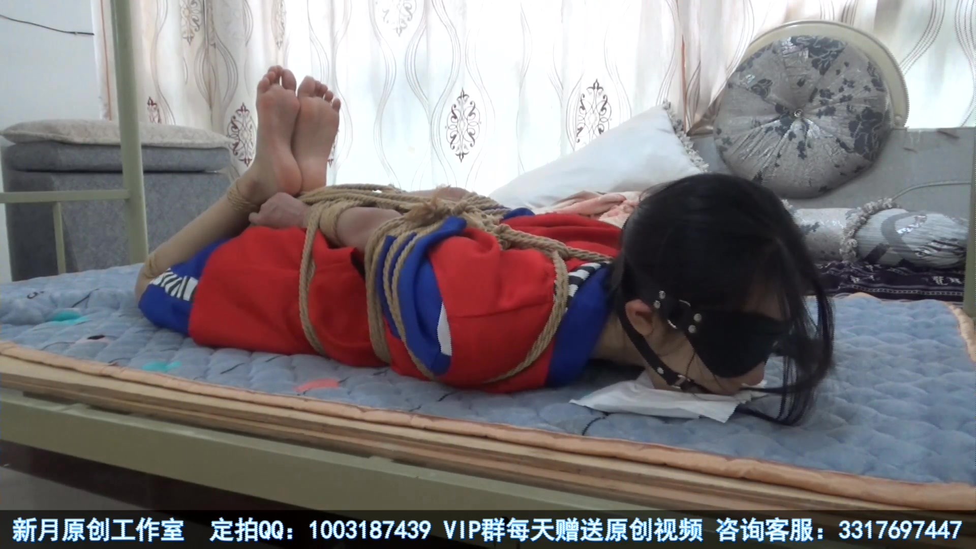 2、红豆知道自己已经没有机会反抗了,只能听从,为了不让她反抗,管教解开了她的手铐没有解开脚铐,让她换上死囚红马甲,给她直臂捆绑上身之后,让她趴在了床上才解开双脚镣铐。