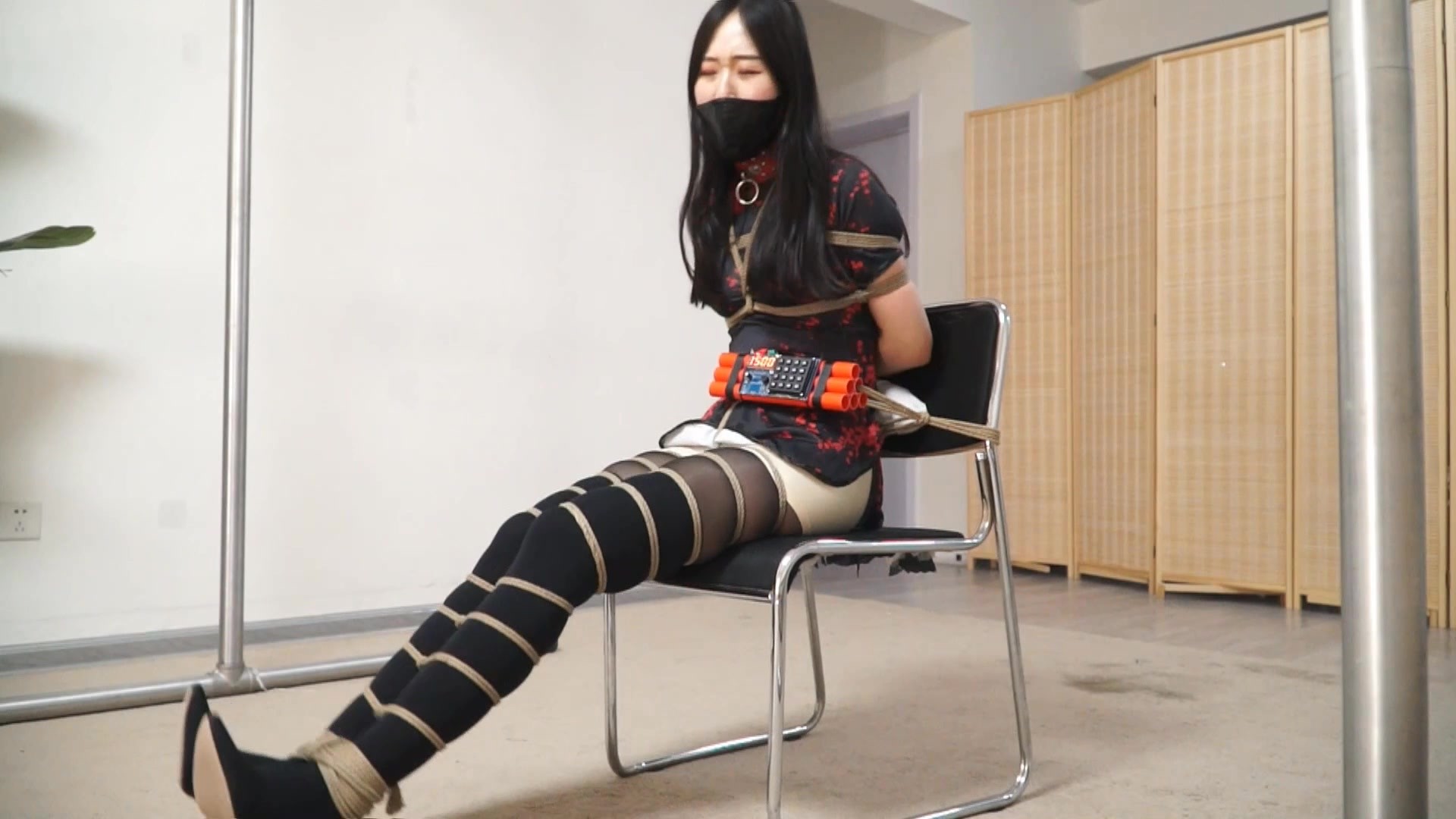 此时机关启动,她被强制固定在了椅子上,腰间绑着定时zha弹