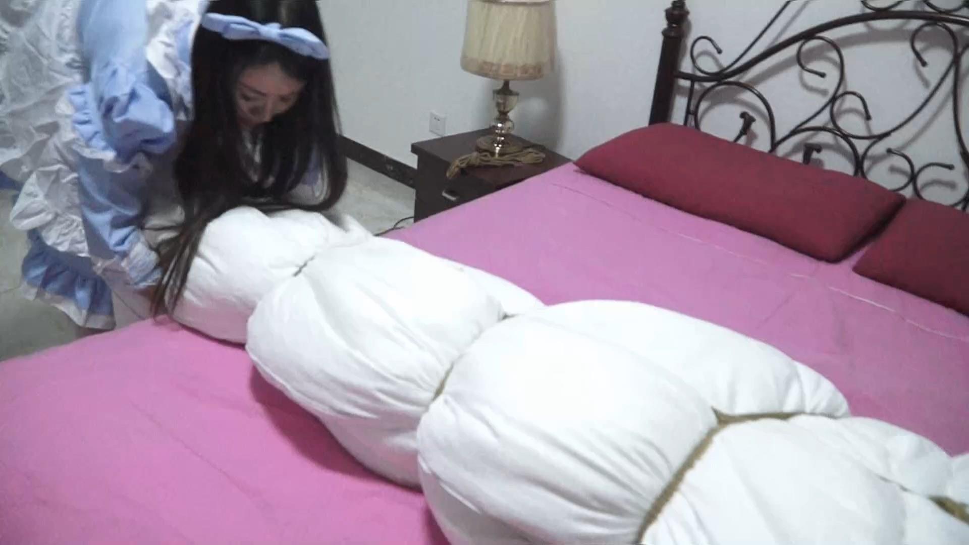 被捆绑包裹在被子里TK惩罚的女孩最终屈服,愿意下跪。但李然改变主意,不愿意放了她,而是将她永远包裹在被子里留在身边,无助的女孩再一次被裹在被子里..