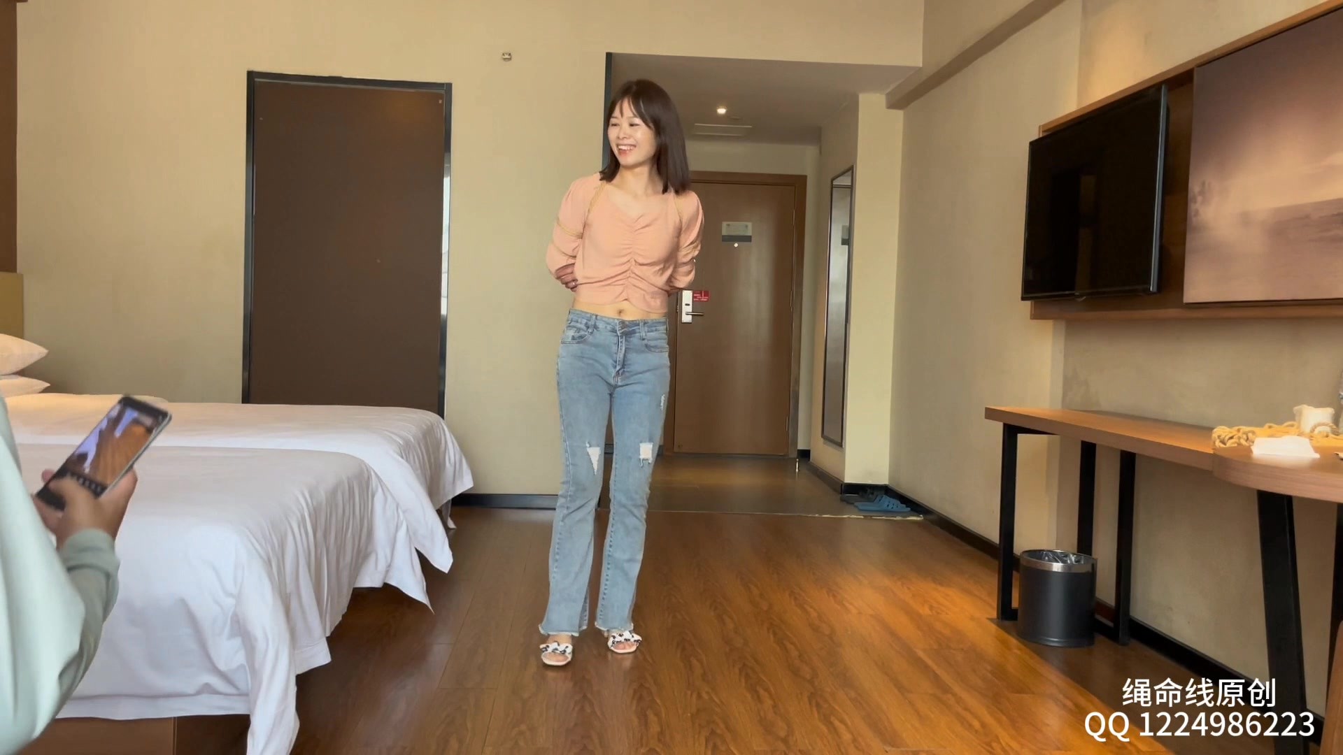 素人文文了解绳艺后,一心想着做绳模,第一次体验捆绑先给她来个简单五花