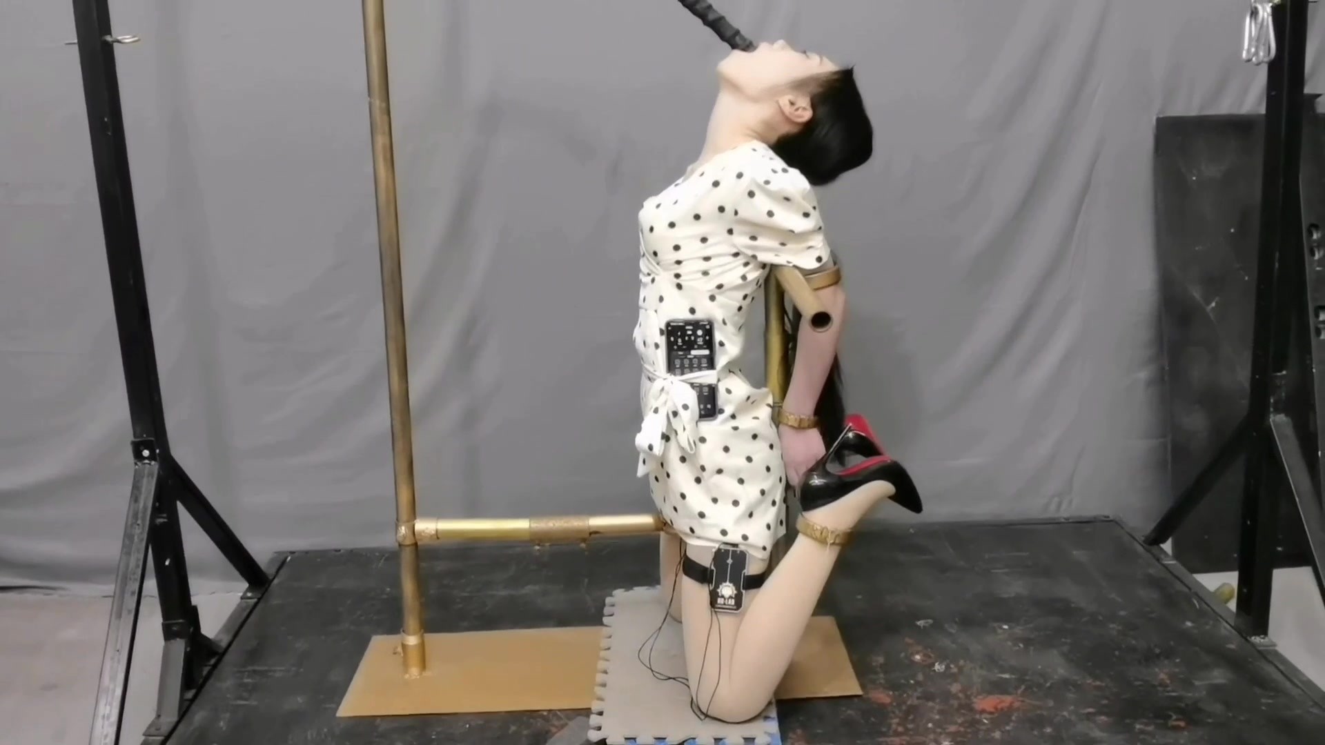 【HD飞天】月仙儿挑战各种游戏屡战屡败,今天要挑战这种拘束架强制头部后仰电击强G游戏,是否可挑战成功