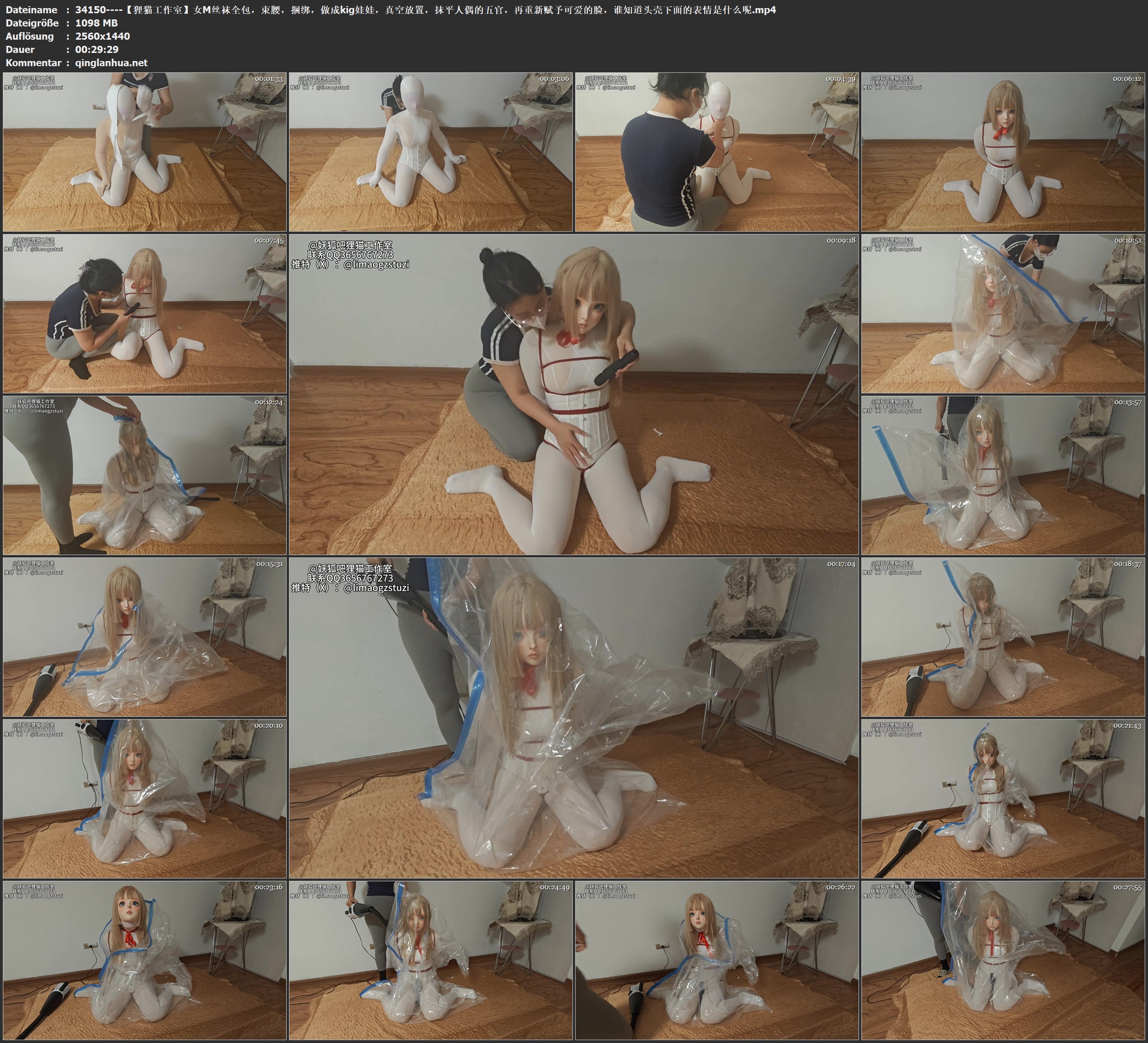 今天做一只丝袜人偶娃娃,给人偶穿好丝袜全包后,抹平她的五官,用白色丝袜全包,再加上白色束腰,这样人偶就变成了纯白人偶,用绳子把人偶捆绑起来,双手背在胸后,再戴上可爱的kigurumi就可以啦,我们抹平了她的五官,再赋予她新的更可爱的五官,相信她会对自己的新五官更满意的,塞进一个小型真空袋,让M这只可爱的kig娃娃被逐渐抽真空,做成人偶商品,加上小话筒,谁知道可爱的人偶下面会是什么表情,可惜没有五官看不到了