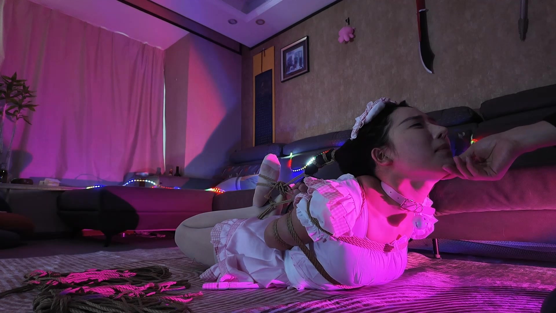 百变女神杨若琳,今天可爱女仆装,浪漫氛围,但是捆绑并不友好,紧紧驷马捆绑,身体反躬,耳光抽到叫爸爸,绑到痛快受不了,再跪下聊天访谈,聊天中,她再次体验打耳光,体验蛇鞭抽打,聊聊她对sm的热爱