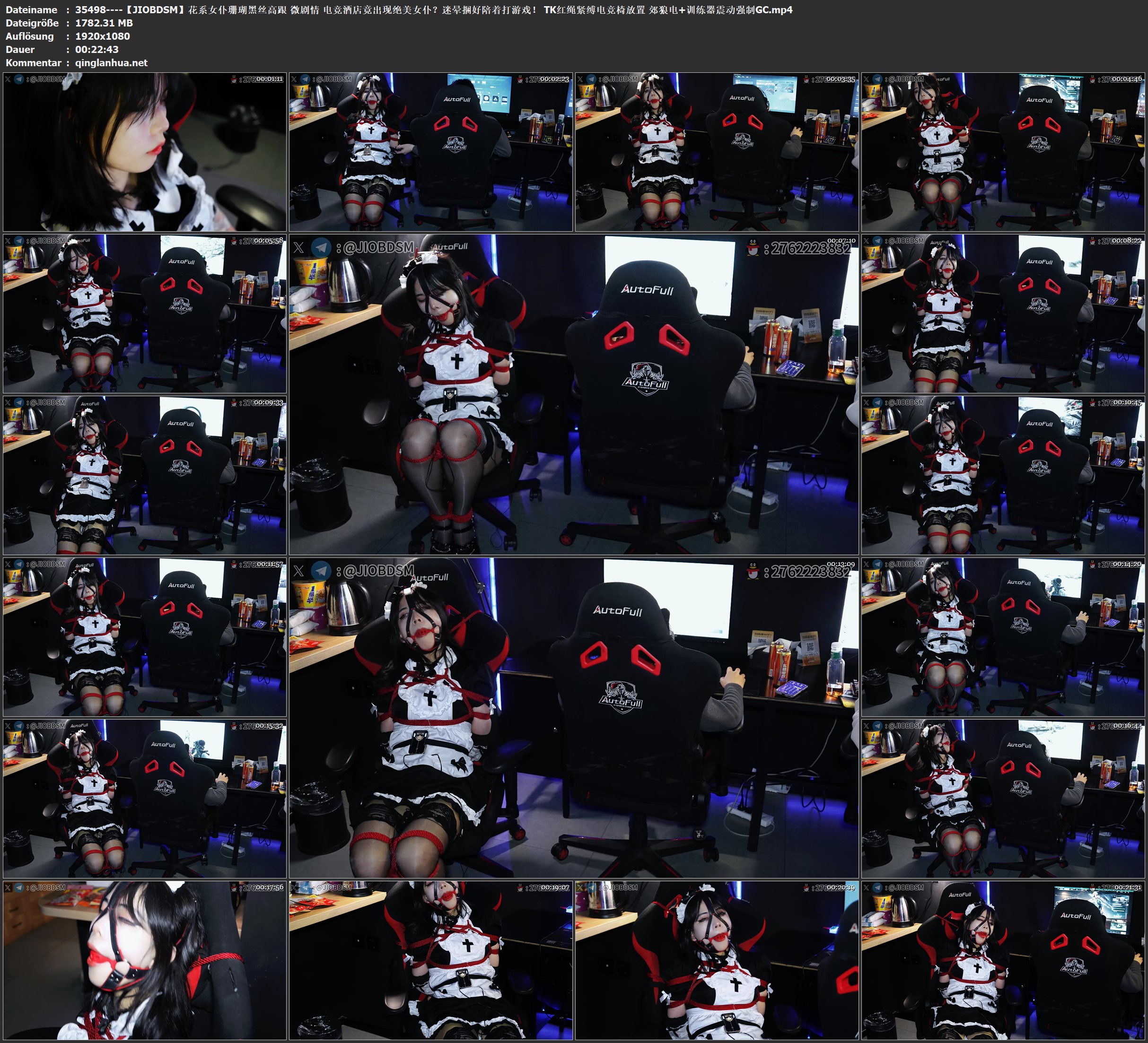 【JIOBDSM】花系女仆珊瑚黑丝高跟 微剧情 电竞酒店竟出现绝美女仆?迷晕捆好陪着打游戏! TK红绳紧缚电竞椅放置 郊狼电+训练器震动强制GC