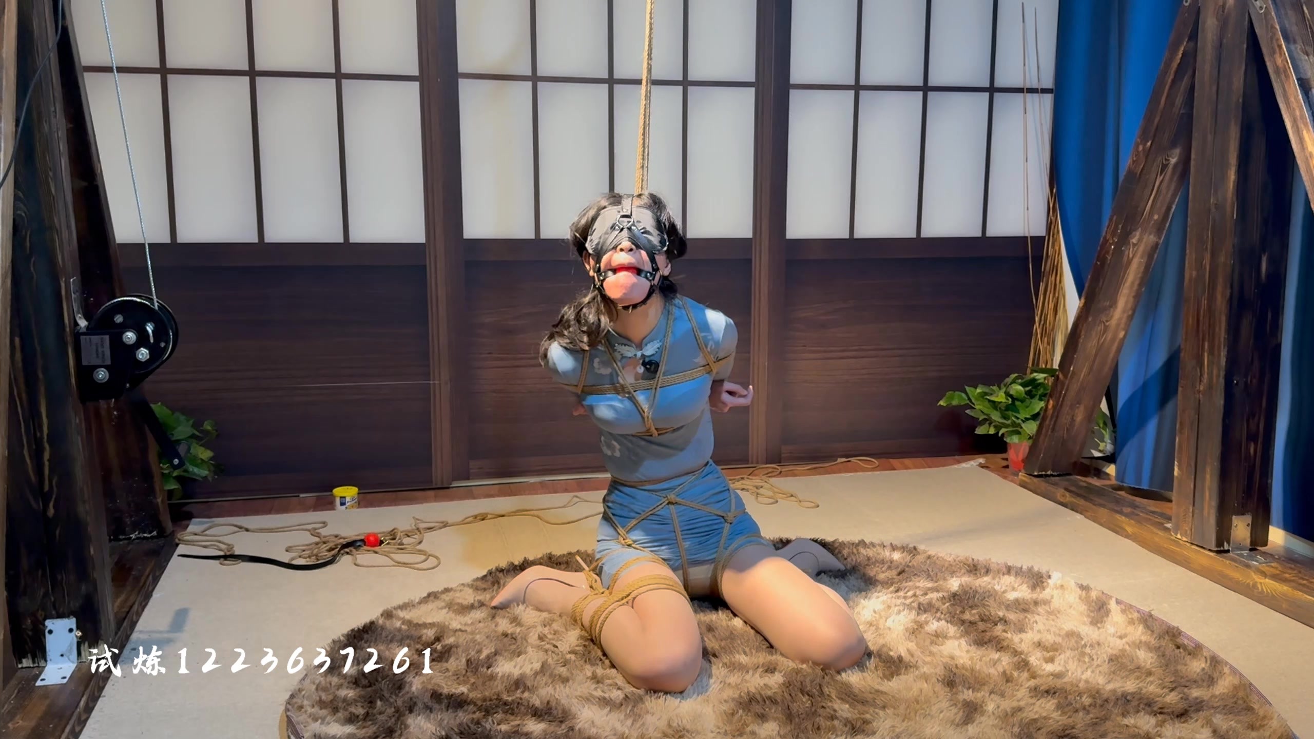 【试炼】腿精小缘首绑蓝色旗袍超薄肉丝耐力非凡超级怕痒吊缚把自己玩嗨了