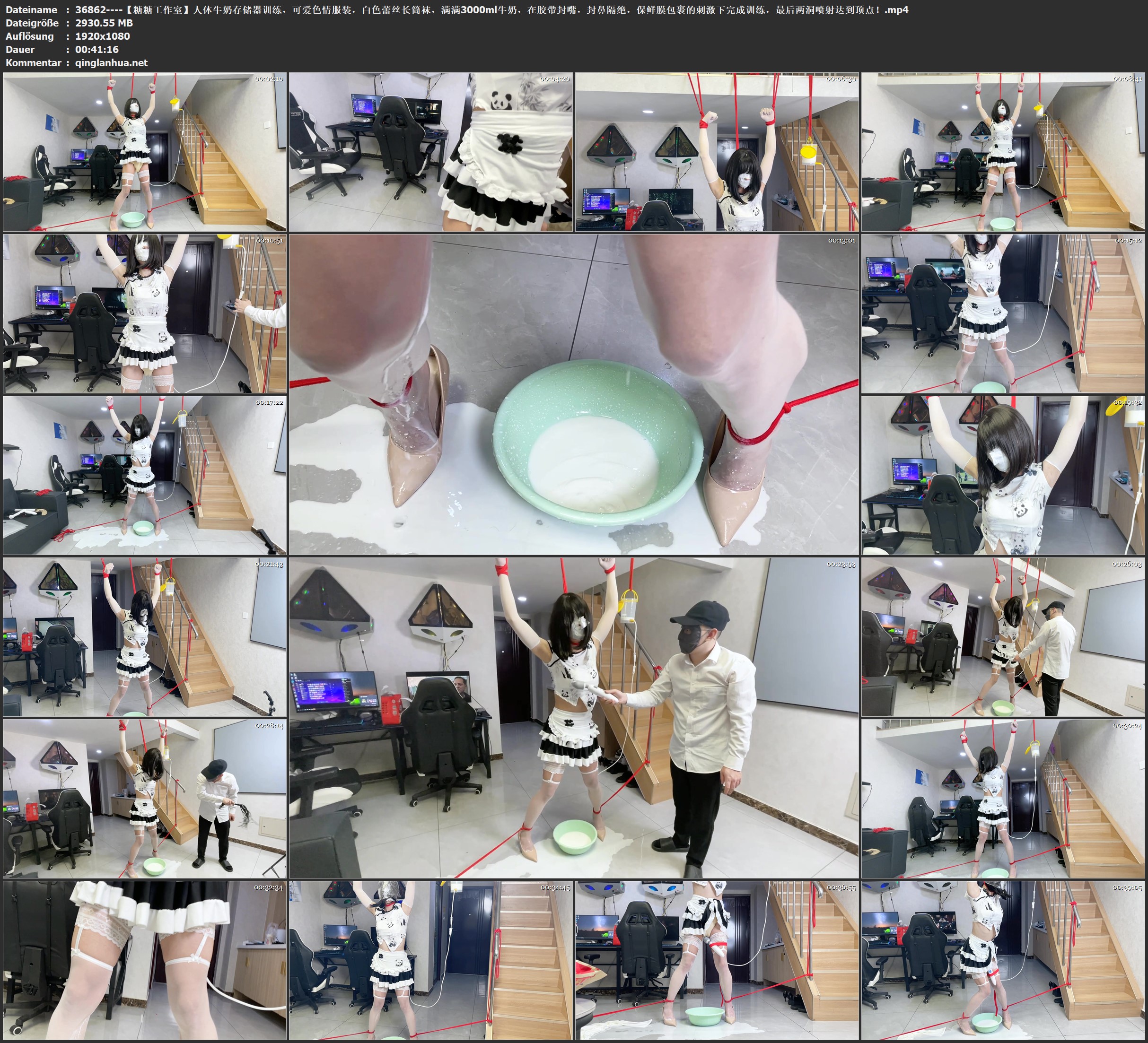 【糖糖工作室】人体牛奶存储器训练,可爱色情服装,白色蕾丝长筒袜,满满3000ml牛奶,在胶带封嘴,封鼻隔绝,保鲜膜包裹的刺激下完成训练,最后两洞喷射达到顶点!