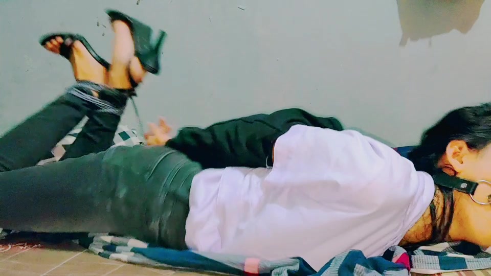 【TiedIndonesia】貓咪打屁股流口水 被膠帶綁起來,嘴被大球堵住,讓她流口水尷尬。 打屁股直到屁股變紅,以懲罰他服從